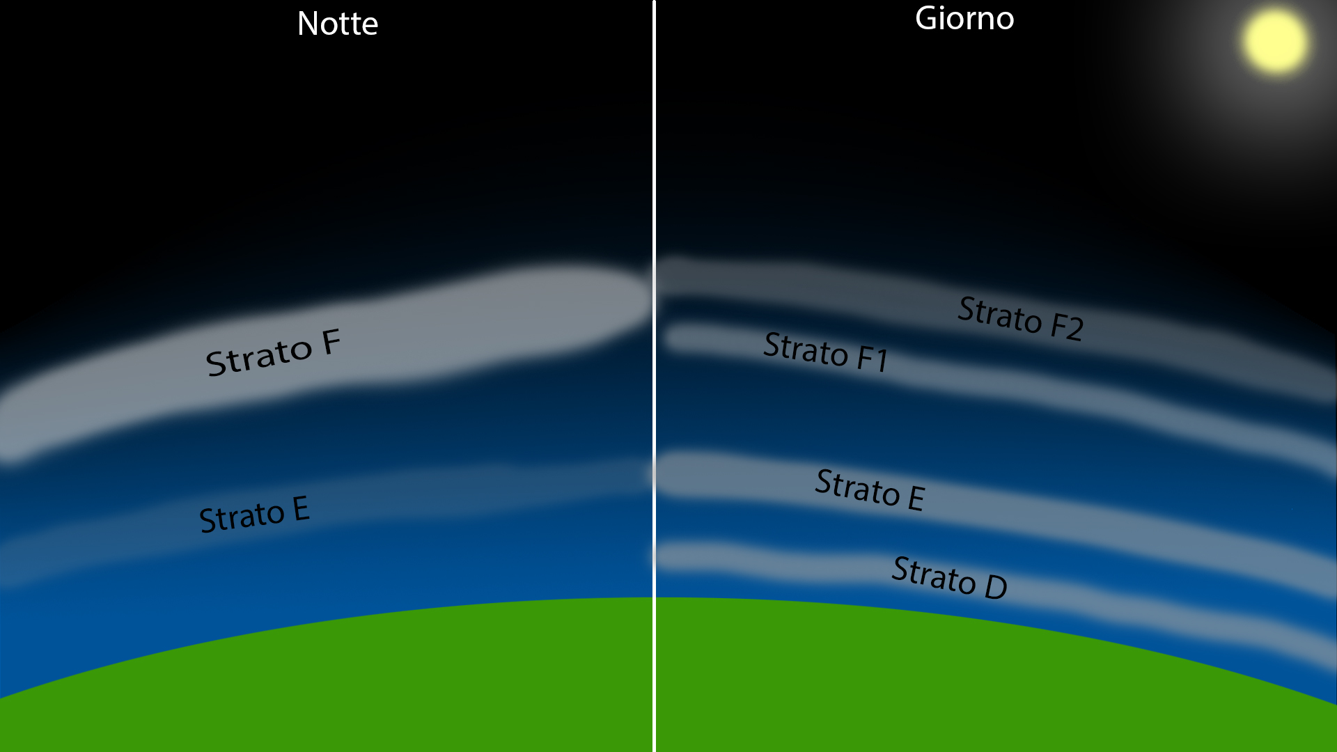 Di notte invece, lo strato F risulta il più elettronicamente denso e quindi permette una riflessione maggiore.