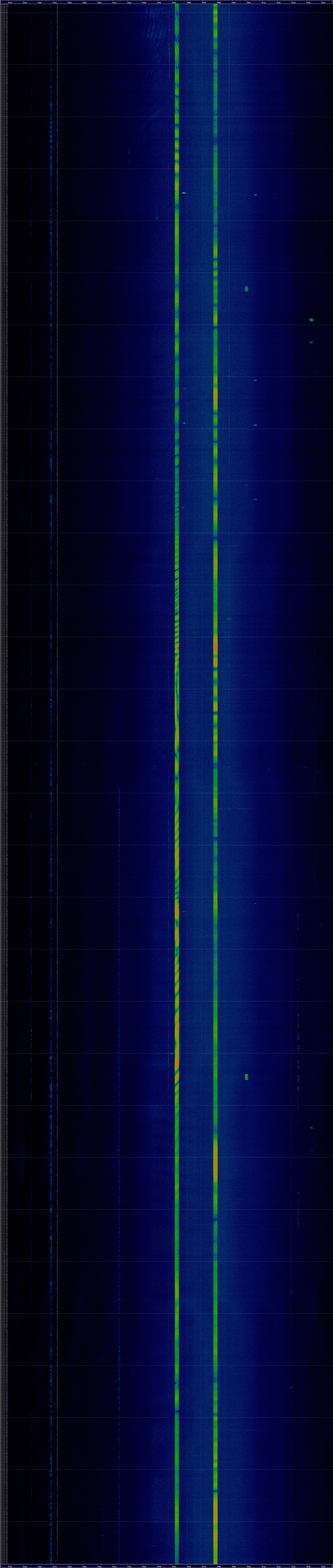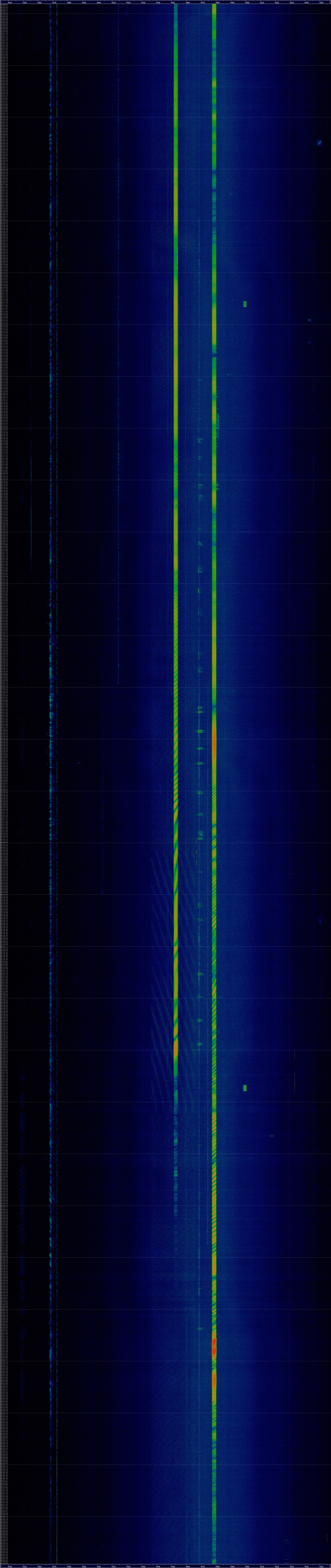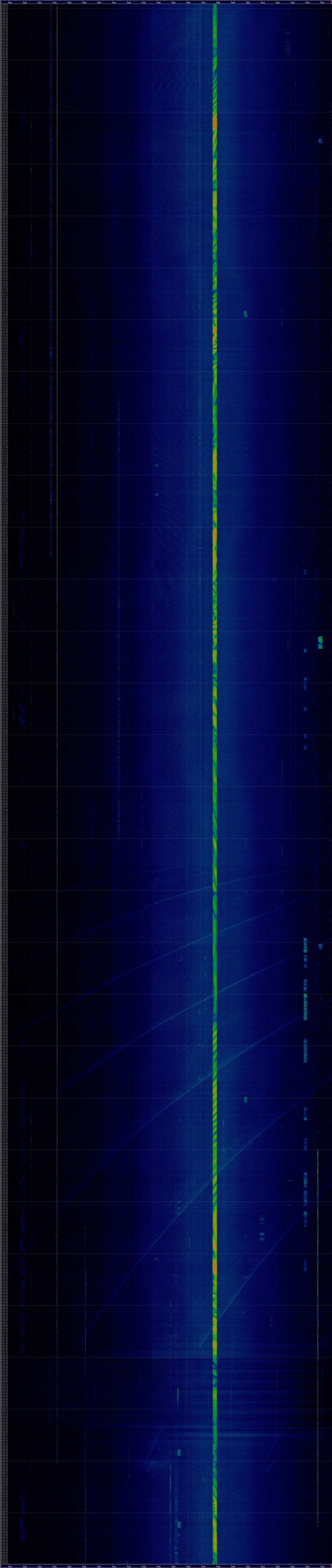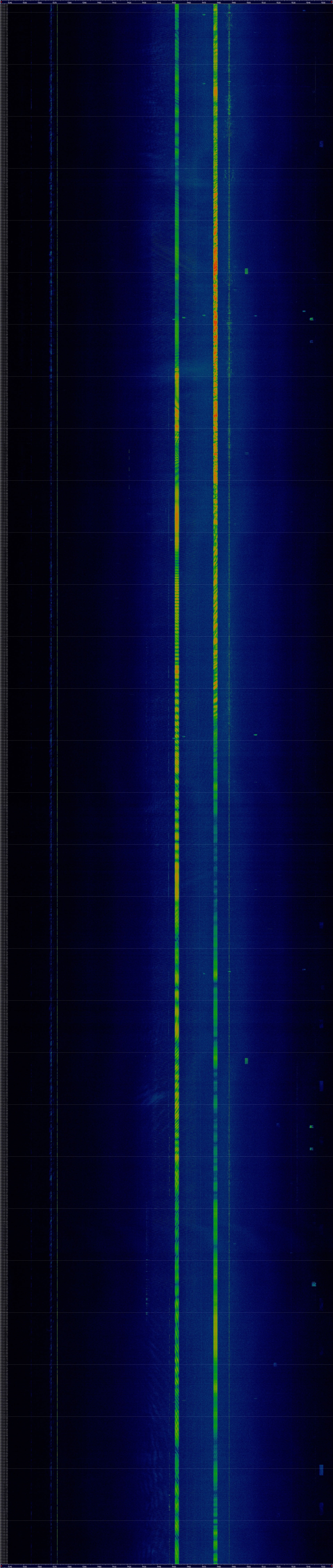 Unendo tutti gli screenshot, ho ottenuto così uno spettrogramma a cascata lungo diverse ore.